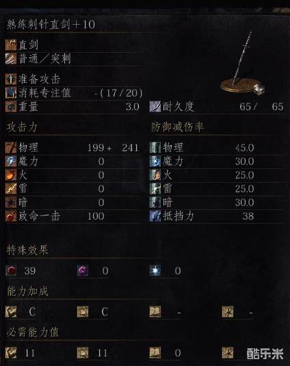 这个用了信仰雷电剑的刺针直剑面板