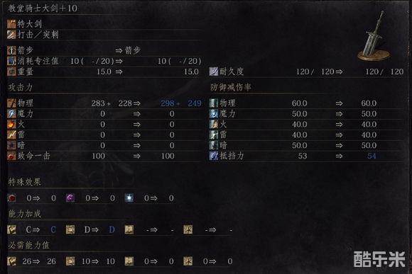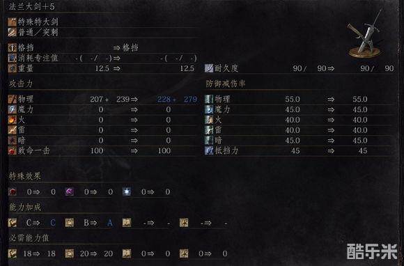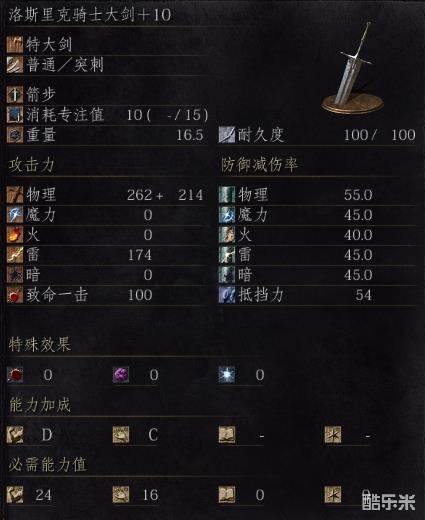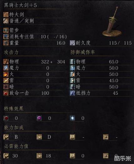 总结:其貌不扬,但是黑魂就是这样,看上去普通的最强。本作最强特大剑,未变质未附魔就有650,楼主熟练变质后676,附魔卡萨斯弯火后783,这还是在楼主智力信仰还没加上去的情况下,要知道咒术可是信仰智力双加成的。后面轻轻松松上800。不过属性伤害多,面板有些虚高。标准中世纪骑士剑放大加粗版本,这是一把蕴有雷之力的猎龙之剑,剑刃充满战斗遗留的伤口,剑身锈迹斑斑,战火远去,只有遗留下来的武器诉说着那个火之崛起的时代,也是猎龙的时代。