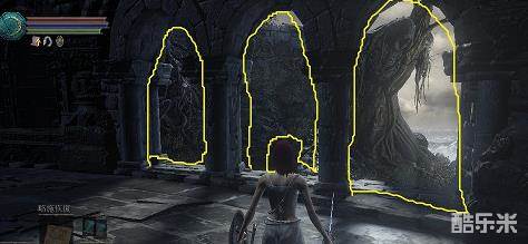 往上走之后会发现三个拱门,有时候地图尚未读取完成会呈现雾门,请等待
