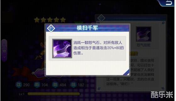 横扫千军:消耗一颗怒气石,对所有敌人造成20%+80的伤害