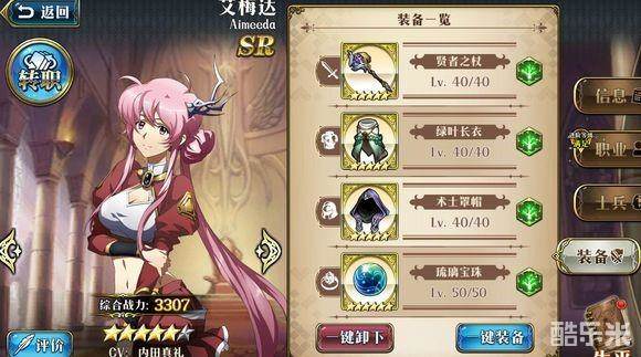 这是 debuff 主力,粉毛,装备 全部都是 非常拉稀的,反正不能抗,减了攻击的冰龙,照样一刀秒杀她,好好保护起来就是了。如果是练度很高的粉毛,技能可以把超级吐槽,换成 圣言,这样可以提高 回血的效率。我这个是不行,圣言打冰龙 容易把自己打死了帽子 术士 罩帽 真乃 冰龙杀手,强烈建议有条件的 给其他2个法师也弄一顶,减了冰龙魔抗,打起来倍儿爽