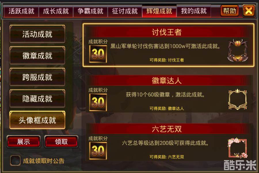 新增一系列头像框成就,完成指定成就即可获得头像框。