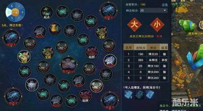 进副本会随机获得一些令牌,令牌主要有控制下一次投点(大、小,或者定点4,5,6),提升下一关人物攻防,以及押注赔率三类。另外,通过BOSS关,宝藏关有几率获得鬼谷令。