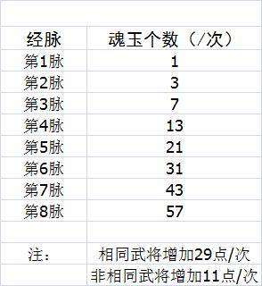 下面我先将基本的每脉修炼一次需要的魂玉列出来。