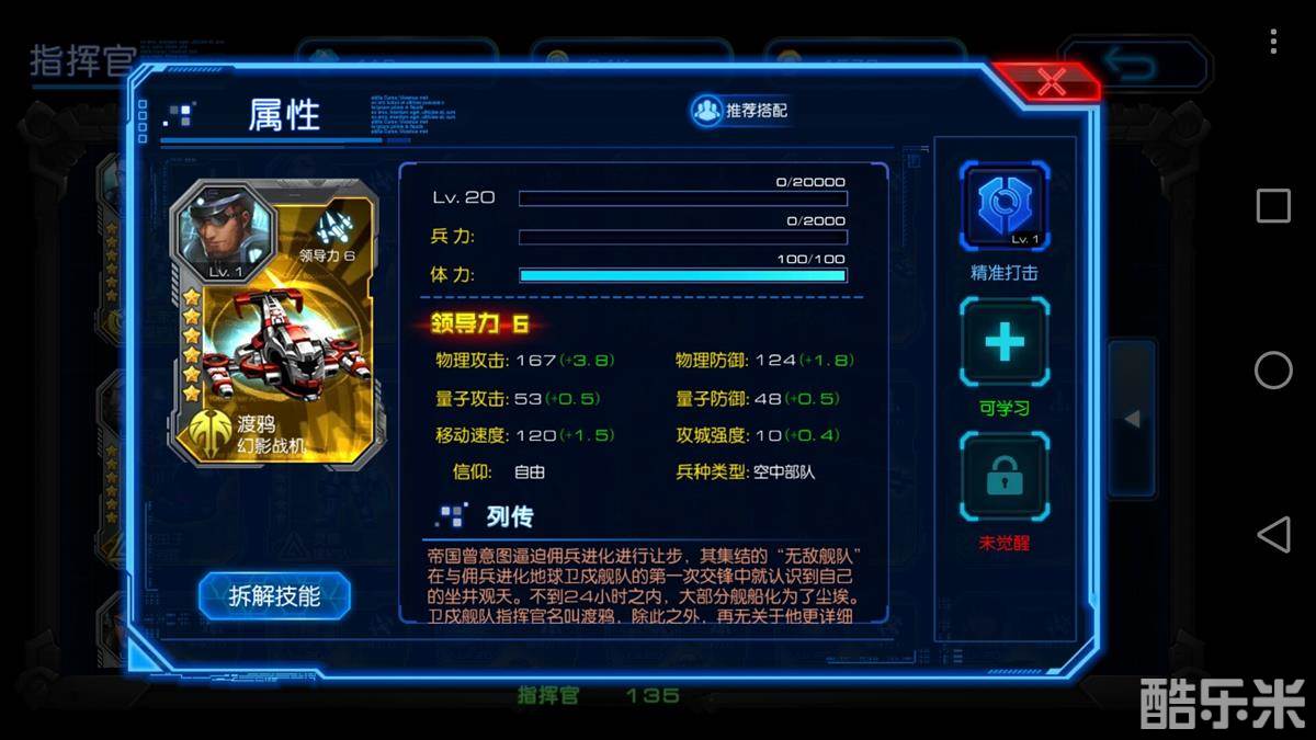 渡鸦是自由信仰下的6星领导力6的高级战将,同样是出身空中部队的他向往和平和自由,从来不会主动出击发动技能,可是一旦被激怒,爆发的物理攻击是一般部队所不能承受的高压痛。