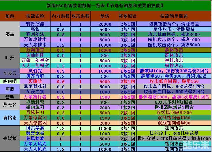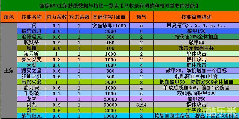 仙侠道R61版本对角色技能进行了调整,下面分享的就是最新的仙侠道R61技能数据汇总,在这里感谢水怪组、水怪群及大神讨论组全体成员不辞辛苦的测试及分析汇总,方便大家今后的查阅,以便大家更好的确定圣地技能选择、PK技能组合套路。