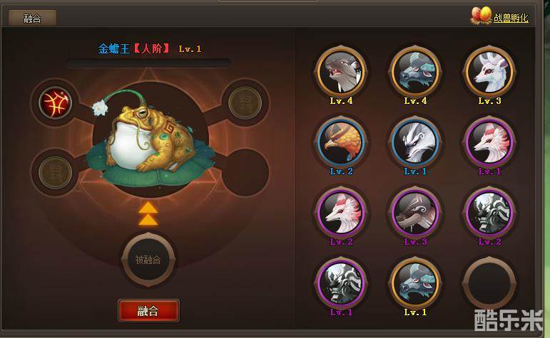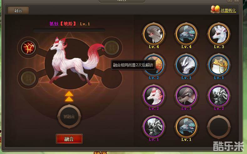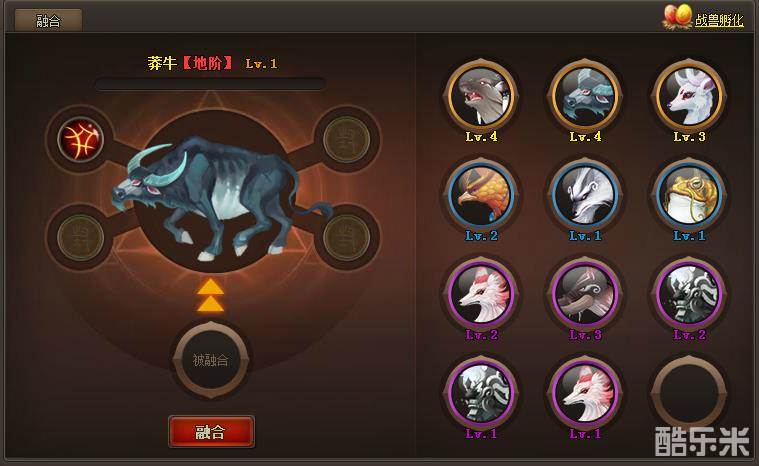 战兽还分为“天阶”、“人阶”和“地阶”,但小编目前试下来除了初始默契值不同外貌似没有什么特别之处,等有空在研究研究,每次上阵只能有1头战兽,在布阵那里调整。