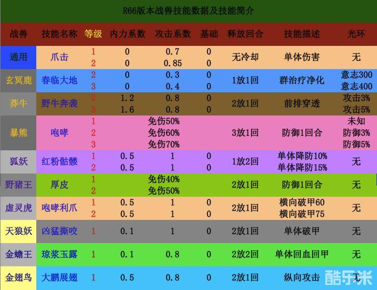一、战兽技能数据表