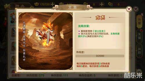 火龙刀是成长性极为可观的神兵,龙裔效果均为伤害上的提升,额外的狱火狂龙随从更是全游戏中最为强力的宠物之一。