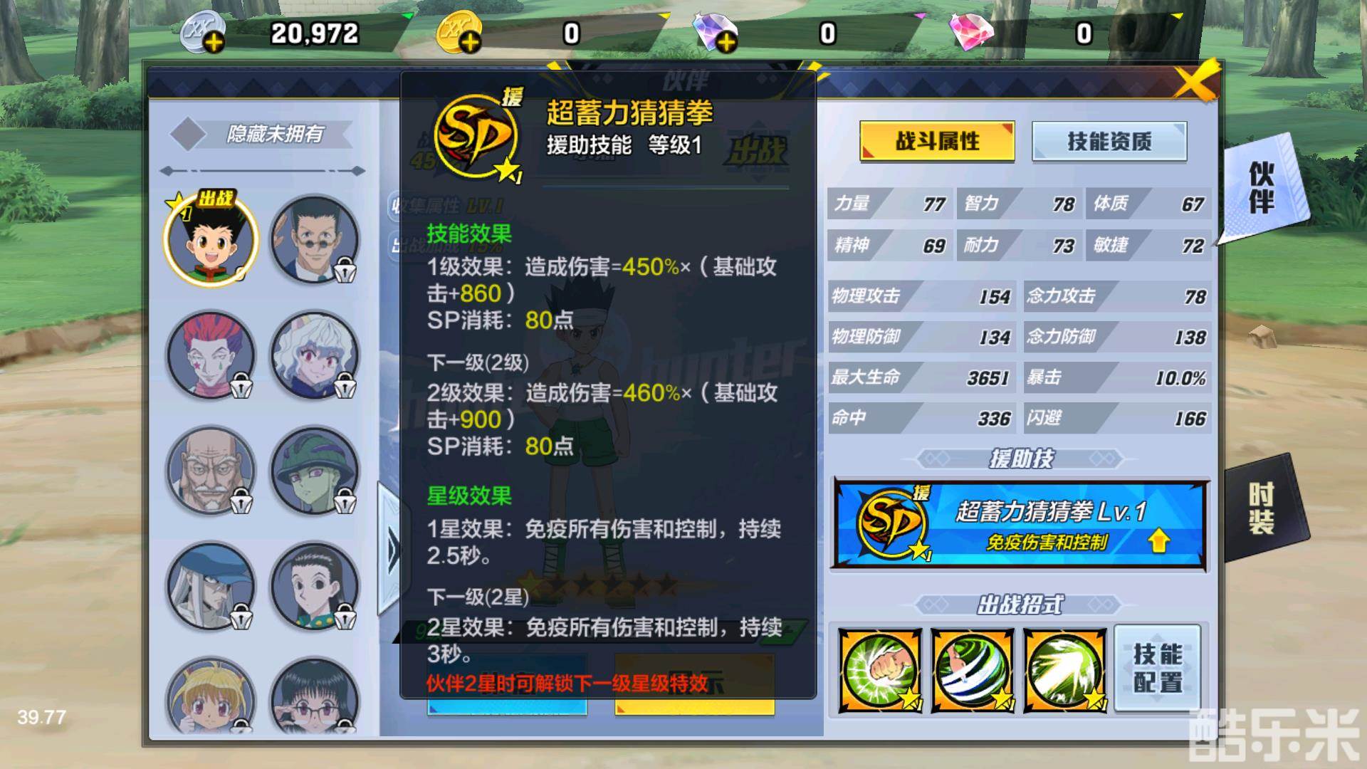 在伙伴界面中,玩家可以自行选择出战的伙伴,以及伙伴的技能,同时也能够在这里看到伙伴的面板属性以及各自的个性时装。