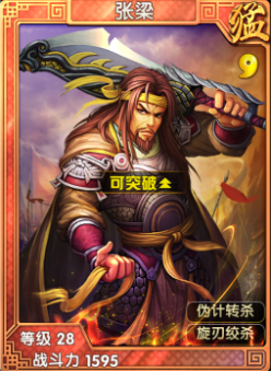 张角达到钻品质,张梁的(武术防御)增加150点。