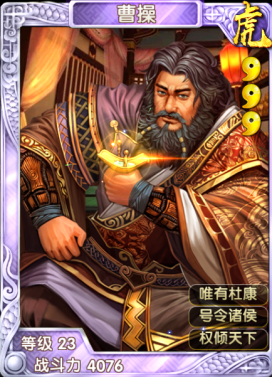 许褚达到钻品质,曹操的(武术防御)增加150点。