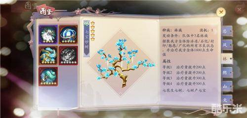 青莲花作为林系比较平民的法宝,每回合回血保证了不会被对方直接A死,而七宝妙树同样有回复能力,还能解除各类不良状态,面对阴系以及其他以控制为主的打法时非常不错。