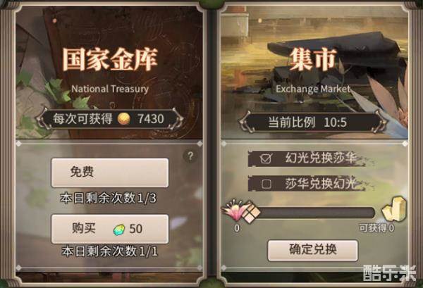 在集市可进行幻光与沙华之间的相互兑换,兑换的比例将由科技“科技研发”来决定,比例最高为10:5。