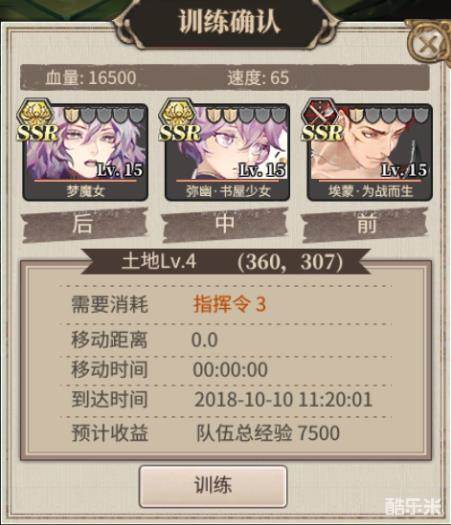 除此之外,每次训练需要消耗指挥令*3,指挥令上限为20,每整点获得一枚,或可以消费90瑟瓦购买3枚(每日限购5次)。