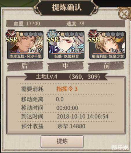 在已占领的土地可进行提炼,从而快速获得大量幻光和沙华。等级越高的土地,提炼获得的资源越多,每次提炼需消耗指挥令*3。