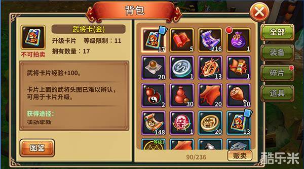在背包界面中,我们得到的所有道具都会排列在这里。为了让各位穿越者更好的查询背包内的物品。我们把物品分为装备、碎片、道具三类。装备指所有未穿戴和已穿戴的装备,值得注意的是,各位穿戴在身上的装备也会占用背包空间。毕竟,装备随时穿在身上,骨头会被压痛的。碎片是指已经获得的装备碎片或者英雄碎片。当碎片数量达到一定数量时,可以合成对应的装备。道具是指除上述两类外的其他道具,在这里,你可能会翻到很多自己都不知道什么时候获得的奇怪玩意。