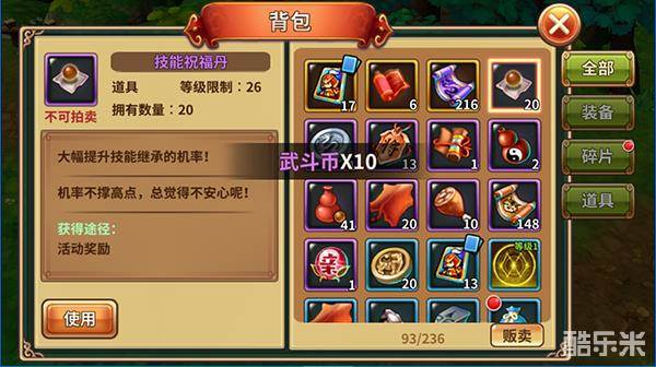 各位可以看到,在比武奖励包中,除了武斗币和送礼材料外,还有可能获得卡片和青龙之魂呢~!本巴豆妖开启了这个包裹,结果不负众望获得了安慰奖励十个武斗币……