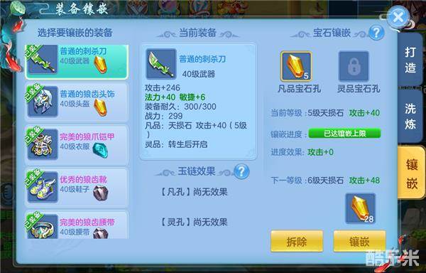 武器和头盔毫无疑问是选中天损石,鞋子和腰带用天速石,铠甲选择天寿石,项链根据自身情况进行选择即可。