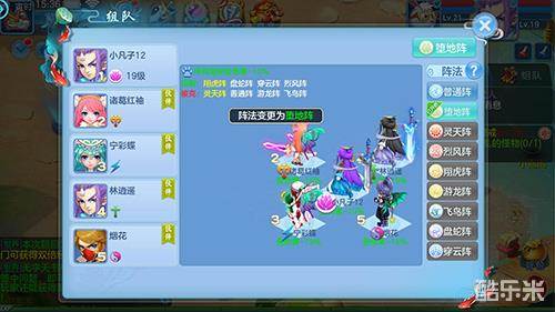 每种阵法给不同位置加的属性不同,只要针对位置选择对应的属性阵法就可以了,也可以根据战斗不同来选择,例如跟普通NPC战斗,每个位置只要输出就可以,选择灵天阵,每个位置增加10%的伤害。