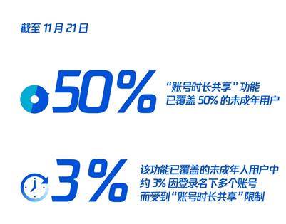 11月15日在《王者荣耀》启用的 “账号时长共享”功能,基于自然人身份对未成年用户名下账号的总游戏时长进行合并计算,目前正在逐步发挥效力。
