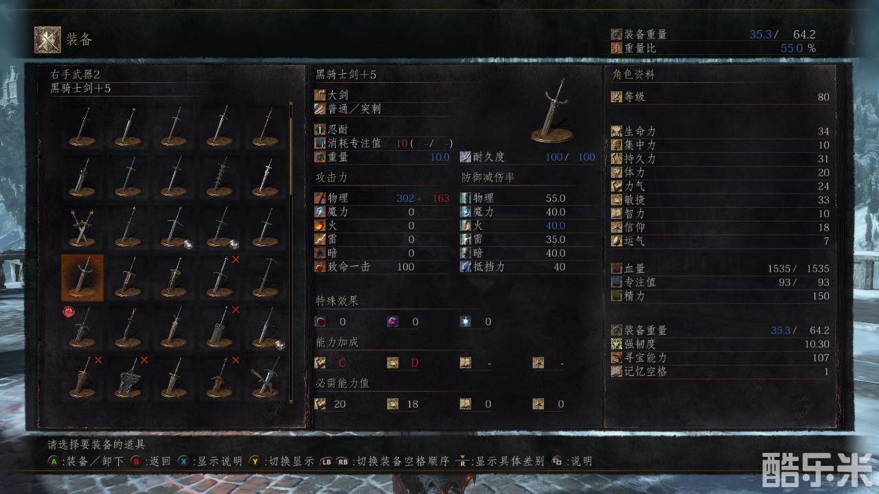 所有抗性加一倍左右,在时机恰当的时候,可以利用重武器出招的间隔破掉重武器霸体也就是说巨剑打你一下你忍耐打他两下,而轻武器也不敢在你面前贪刀,打你完全像打boss一样看你出招才敢找破绽进攻,忍耐的一瞬间有弹刀判定,十分克制直剑侠。