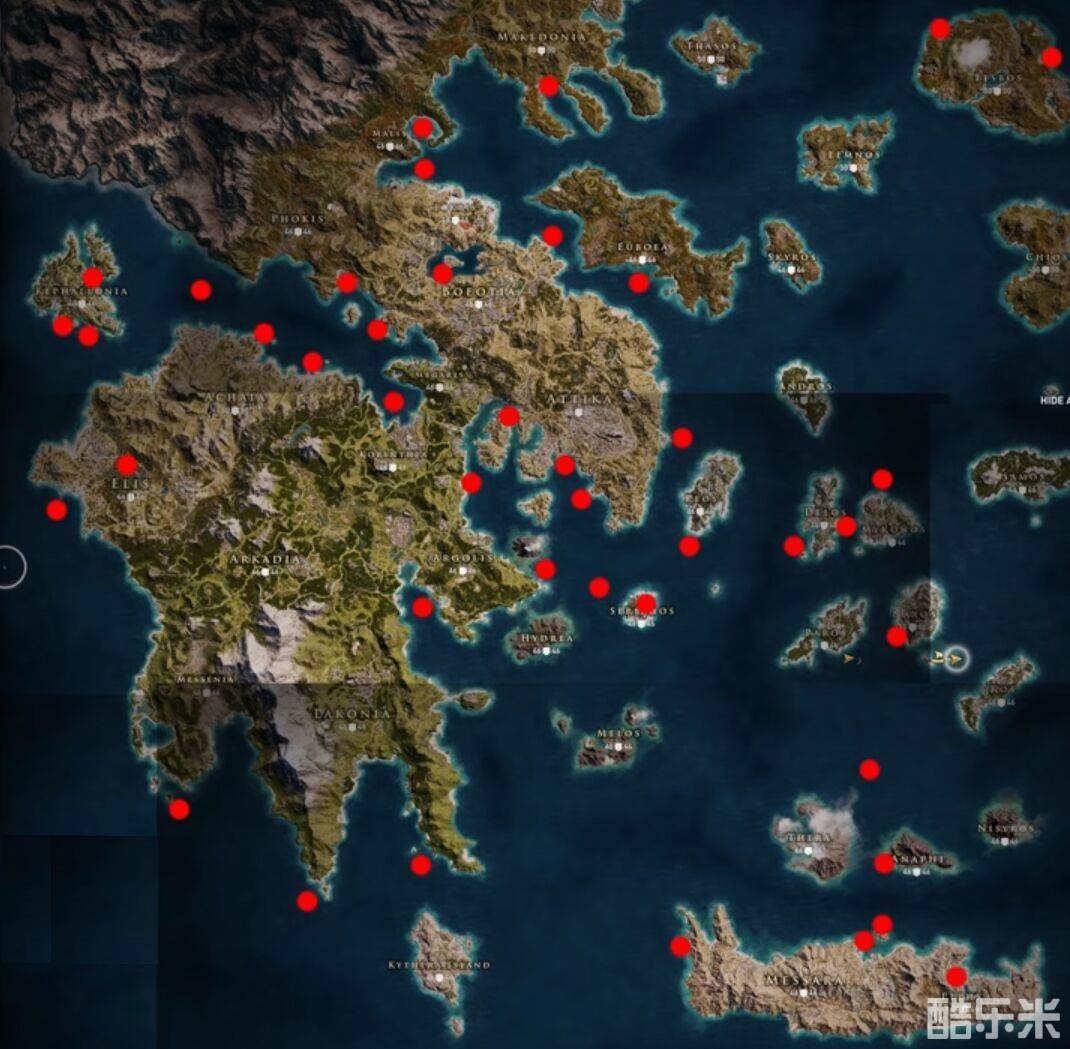 唯一的收集杯,地点如下图红点所示。有几个水下地点是隐藏的,如果自行探索需结合赞尼亚任务线给的藏宝图才能发现这些地点。