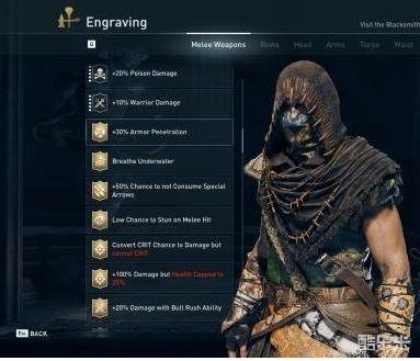 15、在铭刻界面查看自己还有哪些属性没有解锁,+30%盔甲穿透,第9点这个任务推荐等级40多级,但是你20级就可以完成,任务是找三件东西,赠送十多万经验,不过需要潜入。在海神波塞冬的神像旁有几个狮子在看箱子,那个箱子里放着波塞冬的叉子,解锁“水下呼吸”属性。