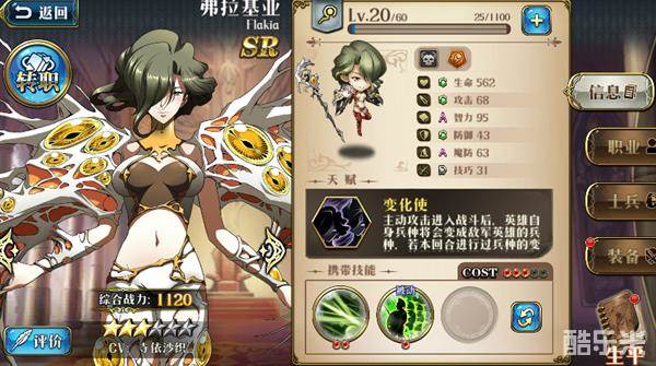 天赋:主动攻击进入战斗后,英雄自身兵种将会变成敌军英雄的兵种,并可以额外行动1次,并且获得攻击提升5%效果,持续一回合,该效果需要间隔4回合才可以再次触发(这是2星时候的天赋,以为我没高星,知道的小伙伴可以帮忙补充)