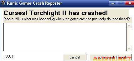 《火炬之光2》弹出Runic Games Crash Reporter的对话框如下图所示: