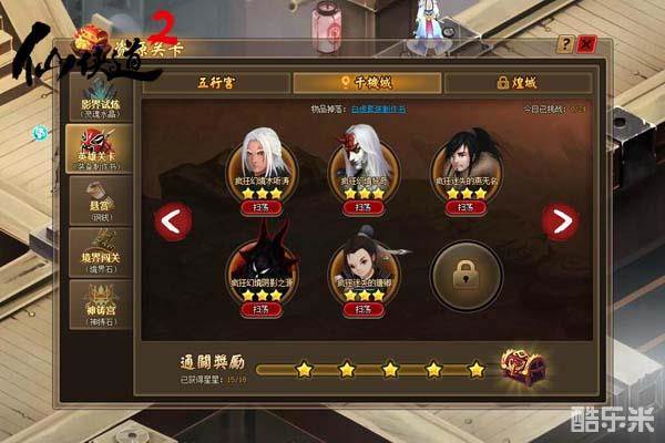 新游《仙侠道2》中,在玩家等级提升的时候,系统将自动开放千机城关卡。玩家每天最多可以挑战24次千机城关卡,为玩家一定不要错过这样的机会哦!!进入关卡后,玩家需要击败关卡中的各类疯狂怪物,这样才算通关,9个回合内通关还可获得3星评级。获得3星评级的关卡之后即可进行扫荡,更快的领取各类奖励哦!