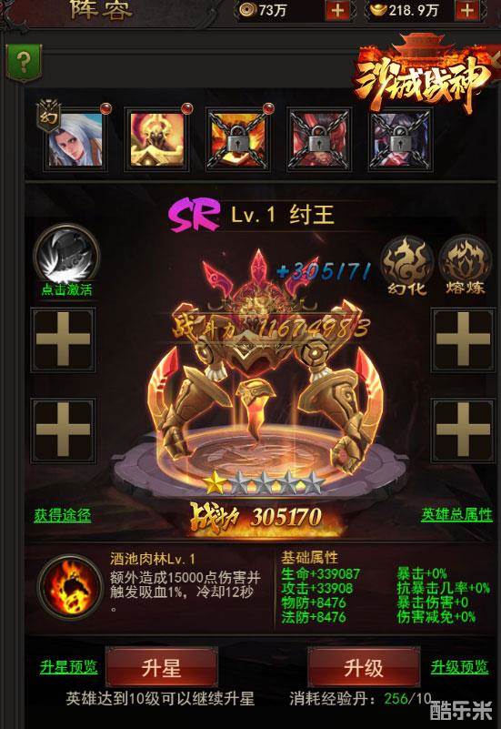 玩家可以消耗经验丹给幻化的英雄升级,英雄到达10级可继续升星。升级能够提高英雄的生命、攻击、物防与法防,而升星能够提升英雄技能的属性加成