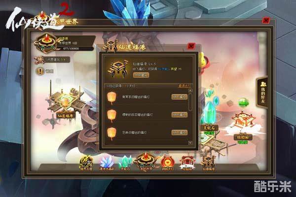 《仙侠道2》中,玩家开启木甲世界后,仙道福港功能自动开启。仙道福港中,玩家之间可以互相赠送福灯,获得福灯的玩家放飞福灯即可获得奖励。玩家每天可获得的福灯有限,如果你想获得更多的福灯,就必须提升仙道福港的等级,等级越高,每天可以获得的福灯数量也越多!