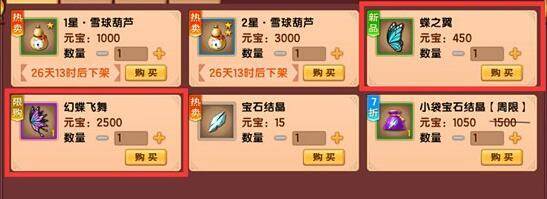 幻蝶飞舞:元宝商店 售价:2500元宝