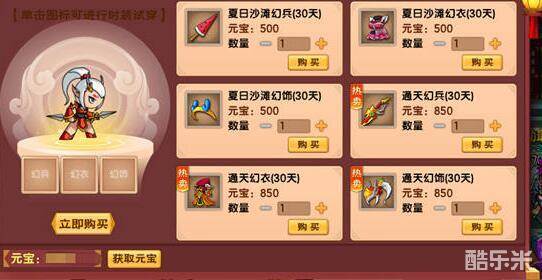 2、方法2可以在元宝商城后买时装(月卡30一月有9000元宝通过此方法购买时装相应便宜一点)