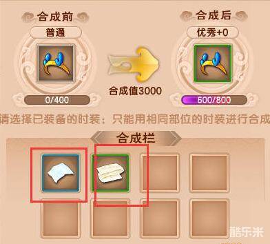 方法2:我们可以用以下两种材料为我们想要合成的时装一共合成值