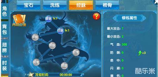 经脉系统通过护送获得精华,可以用精华来升级经脉,提升自身各项属性。经脉的修炼是循环的,依次提升防御,攻击,闪避,命中,气血,附加伤害,抵抗伤害。