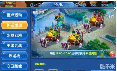 每日19:00-19:30开启双倍运镖,完成时可获得双倍的奖励,点击刷新镖车可以刷新镖车的品质,品质越好,奖励越好。点击护送开始护送。