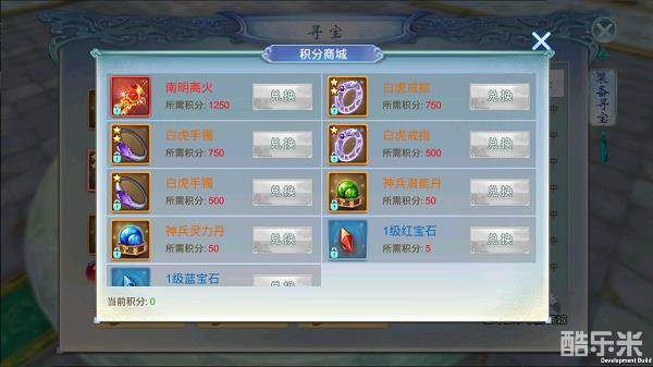 【寻宝奖励】:每次寻宝可以获得展示奖励中的随机一个,还可以获得积分,可在积分商城里兑换道具。随机道具有可能是稀有橙色装备、绝世神兵、双倍经验丹等。