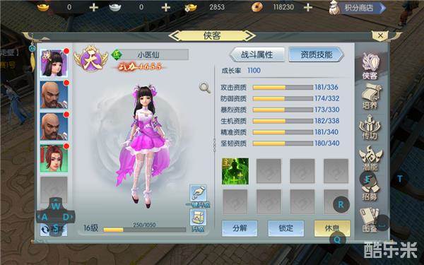 在《侠客行》的游戏世界中,当各位大中小侠们等级达到25级后会通过教程开放侠客系统,自此侠客会伴随着你一起闯荡这个江湖世界,不才抽中了蜂凶巨茹的萝莉小医仙,这侠客真的大…不不不是真的白…咦?不…是真的强!如果将童养媳,哦!不!如果将小萝莉悉心照料培养起来的话,那么闯荡江湖起来定然能得到事半功倍的效果!在享受武力值飙升的同时,还能享受花团锦簇的快感,小萝莉真的棒:)!不废话接着舔我们的攻略!(顺带一提如果您时运不济也可能招募到一裤兜子老秃驴,那种效果各位自己感受吧)