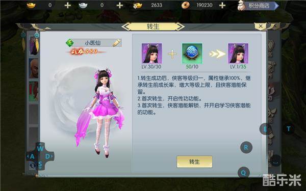我们常在小说中看到这样的场景,少侠练功到达了瓶颈无法突破,练功止步于某个阶段,需要什么突如其来的撞击啊、九度天劫、采阴补阳来打破瓶颈进入下一个练功环节,这里游戏为我们提供了安全的转生手段,并没有什么突如其来的撞击、渡什么天劫,更加没有什么采阴补阳