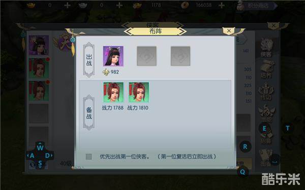 战斗中只能出战一个侠客,但是游戏中可以布阵,布阵中一共可以上阵三名侠客,按照顺序依次出战,即1、2、3,1阵亡以后2立马出战,有点葫芦娃送爷爷的姿势。