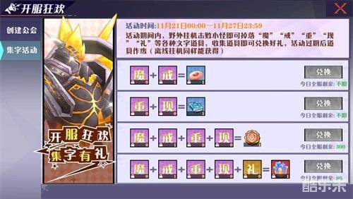 活动期间内,野外挂机击败小怪即可掉落“魔”“戒”“重”“现”“礼”等各种文字道具。快快战斗收集,珍贵的6阶装备礼包等你来领!
