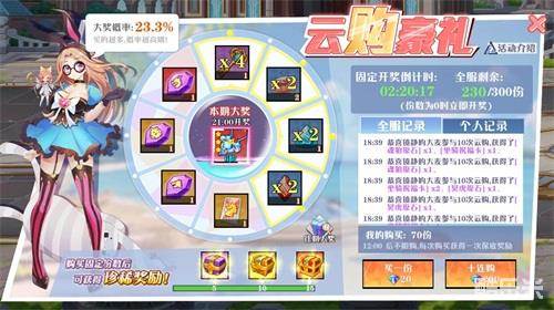 在云购活动开启期间,每天会推出不一样的奖励。大人可以购买一定的抽奖份数,每次购买份数都可以获得奖励。累计购买达到一定的份数时,将可以获得累计购买奖励。所有抽奖份数售罄后,将进行大奖的抽奖,购买越多的玩家,中奖机会越大哟!