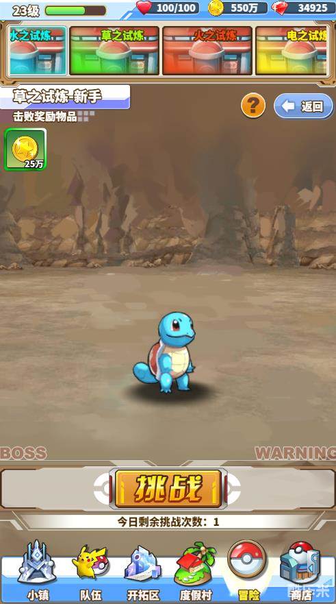 最后编辑于7年前想证明自己是最棒的训练师,就来痛扁游戏里最强的BOSS,在《精灵道馆》中就有专门为小伙伴们设置了狠打怪兽的玩法。在冒险界面中找到“试炼屋”点击进入或者在主界面的开拓区中点击“试炼屋”进入里面就有四个属性BOSS的试炼屋分别为:水之试炼、草之试炼、火之试炼、电之试炼