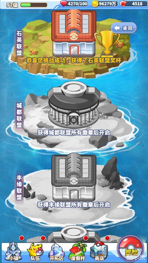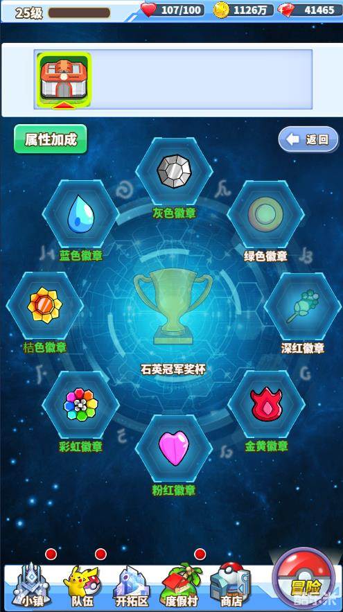 当玩家关一个道馆副本后系统会赠送一个徽章,每个徽章都自带全体攻击、物防、魔防、生命等属性,是非常强力的一个道具,并且每当玩家集齐8枚徽章后就可以解锁冠军杯挑战赛。