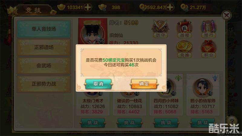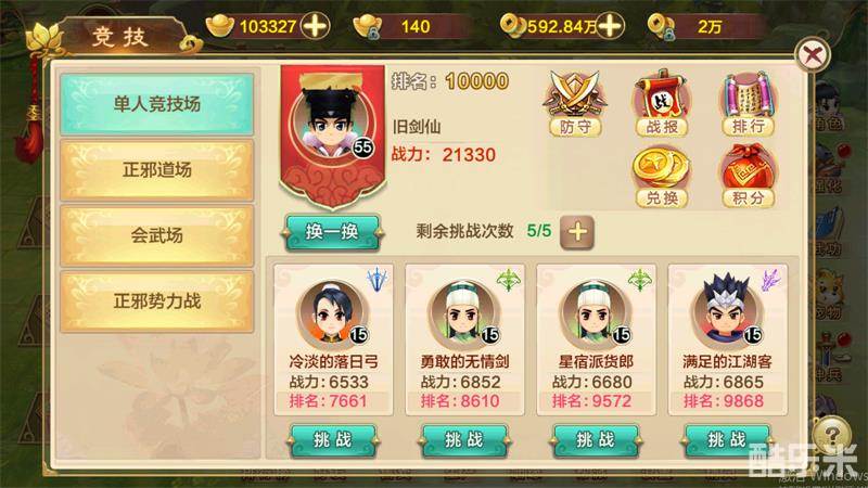 随着主线任务最早开启的PVP系统是单人竞技场玩法。在单人竞技场中,玩家可以挑战其他玩家并击败他们,以取得更好的排名。玩家每日有5次免费的挑战机会,如果机会用尽,根据VIP等级玩家可以购买额外的挑战次数。