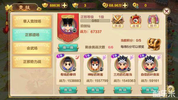 玩家在二转后,会开启正邪道场玩法。在正邪道场中,玩家需要设置好自己的阵容,并挑战对立势力的其他玩家。玩家每获得一个胜场,都会获得正邪等级经验值和一定的积分,当积分达到5分时,即可换取道场宝箱奖励!当玩家的正邪等级提升时,则可以在阵容中放置更多的出战宠物。