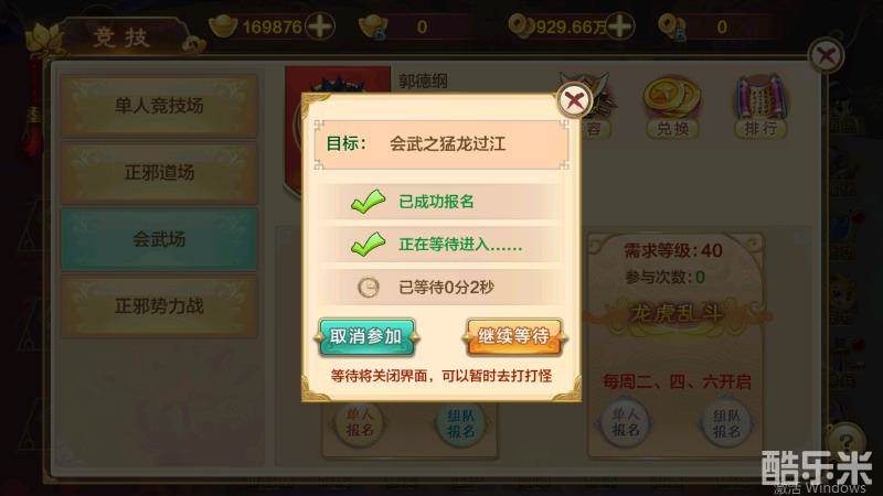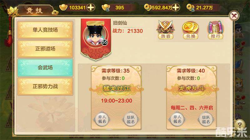 会武玩法是游戏内的一个实时PVP玩法,分为2v2和4v4两种模式。2V2模式【猛龙过江】玩家35级时可以报名参加,每天晚上7点-11点钟开启。4V4模式【龙虎乱斗】玩家40级时可以报名参加,每周二、四、六开启