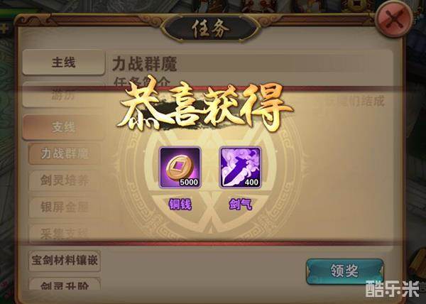 3. 各种任务。完成主线以及支线任务可获得奖励铜钱。